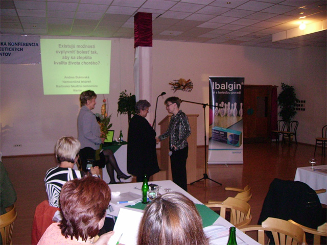 Farmaceutická laborantka z nemocničnej lekárne MFNsP v Martine, Andrea Bukovská, zaujímavým postojom zhrnula problematiku na danú tému vo svojej pútavej prednáške „Existujú možnosti ovplyvniť bolesť tak, aby sa zlepšila kvalita života chorého?“ Citát: „Začiatkom 70. rokov 20. storočia sa medicína začala intenzívne venovať liečbe bolesti. Vznikali spoločnosti pre štúdium a liečbu bolesti, ambulancie chronickej bolesti a bol vyhlásený i týždeň proti bolesti. Cieľom týchto aktivít bolo študovať bolesť a možnosti ako pomôcť chorým, ale aj informovať verejnosť o tom, že v spoločnosti žijú ľudia, ktorí zvyčajne trpia potichu a potrebujú komplexnú pomoc medicíny“.